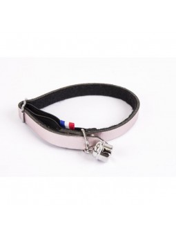Le collier pour chat en cuir rose métallisé Dakota MARTIN SELLIER est agrémenté d'un petit grelot et d'une étiquette drapeau cousue pour garantir sa fabrication en France.